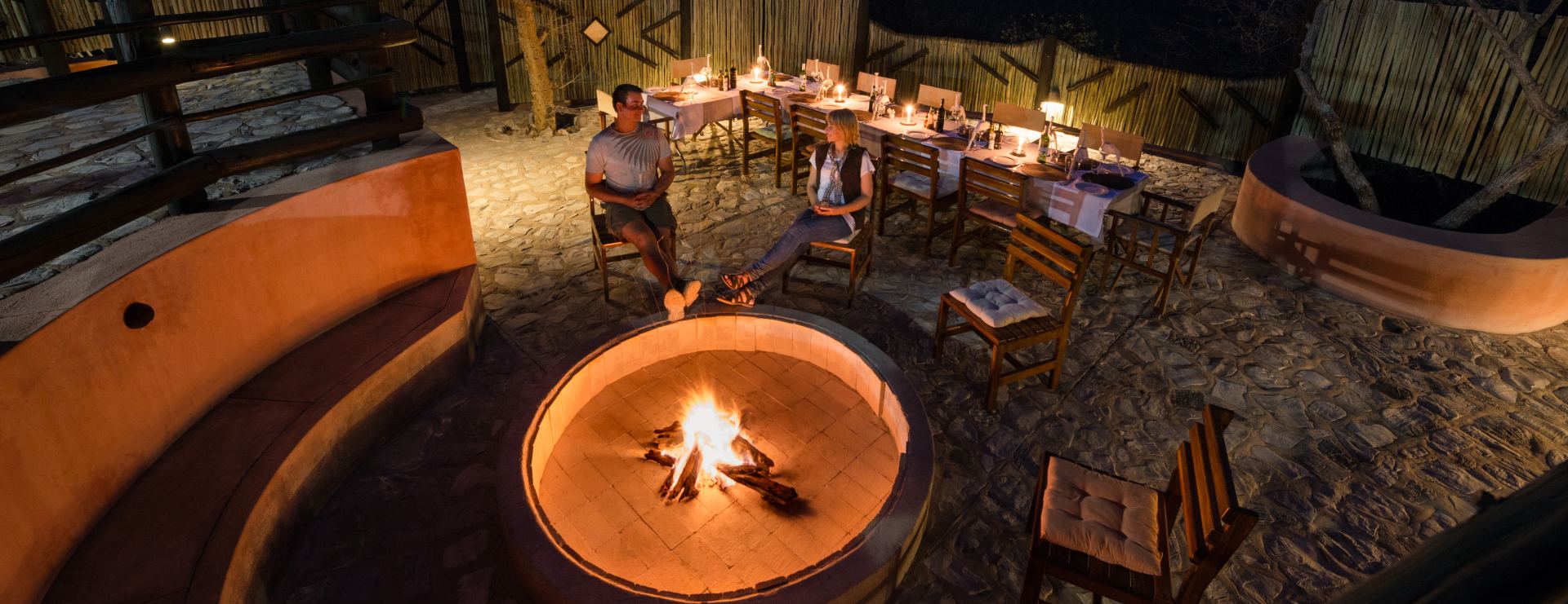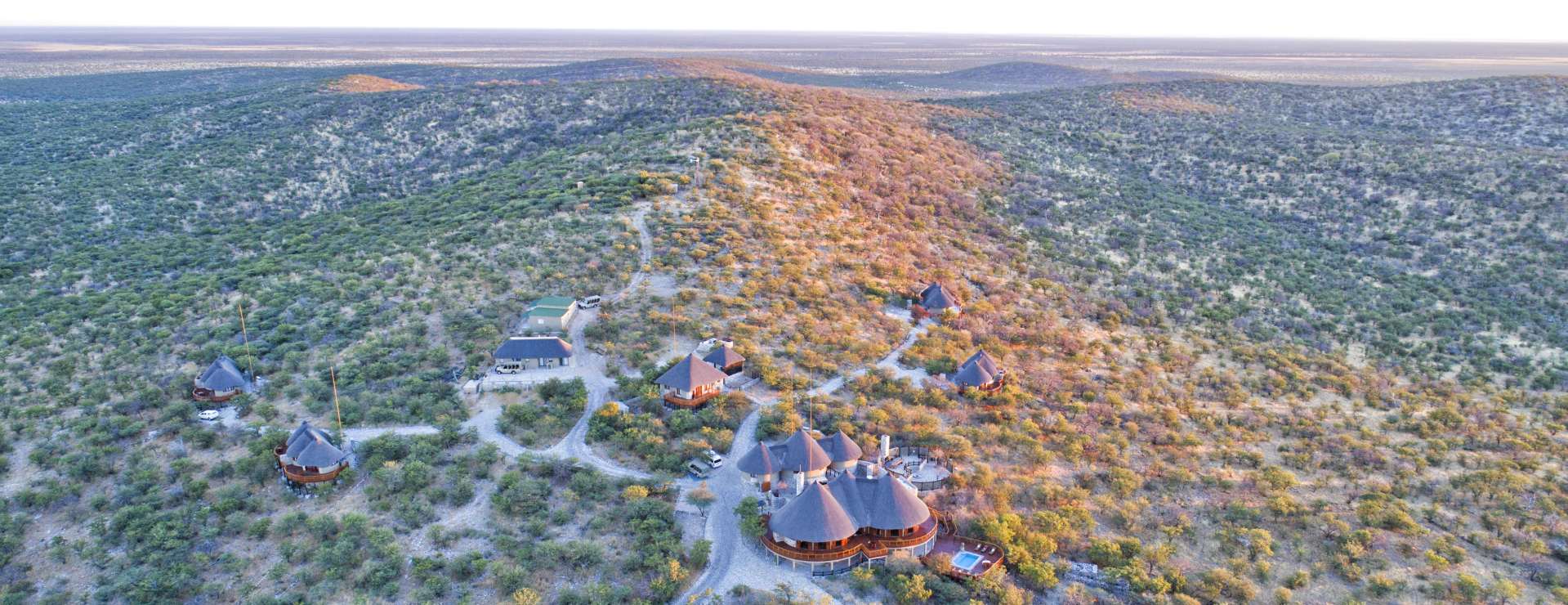 Lodgen tilbyder en eksklusiv safarioplevelse, hvor traditionel namibisk arkitektur møder moderne komfort og panoramiske terrasser med spektakulær udsigt over bushen.