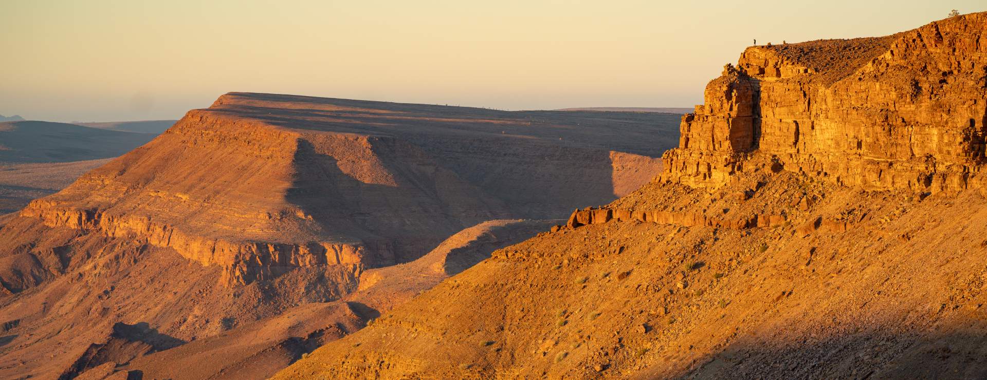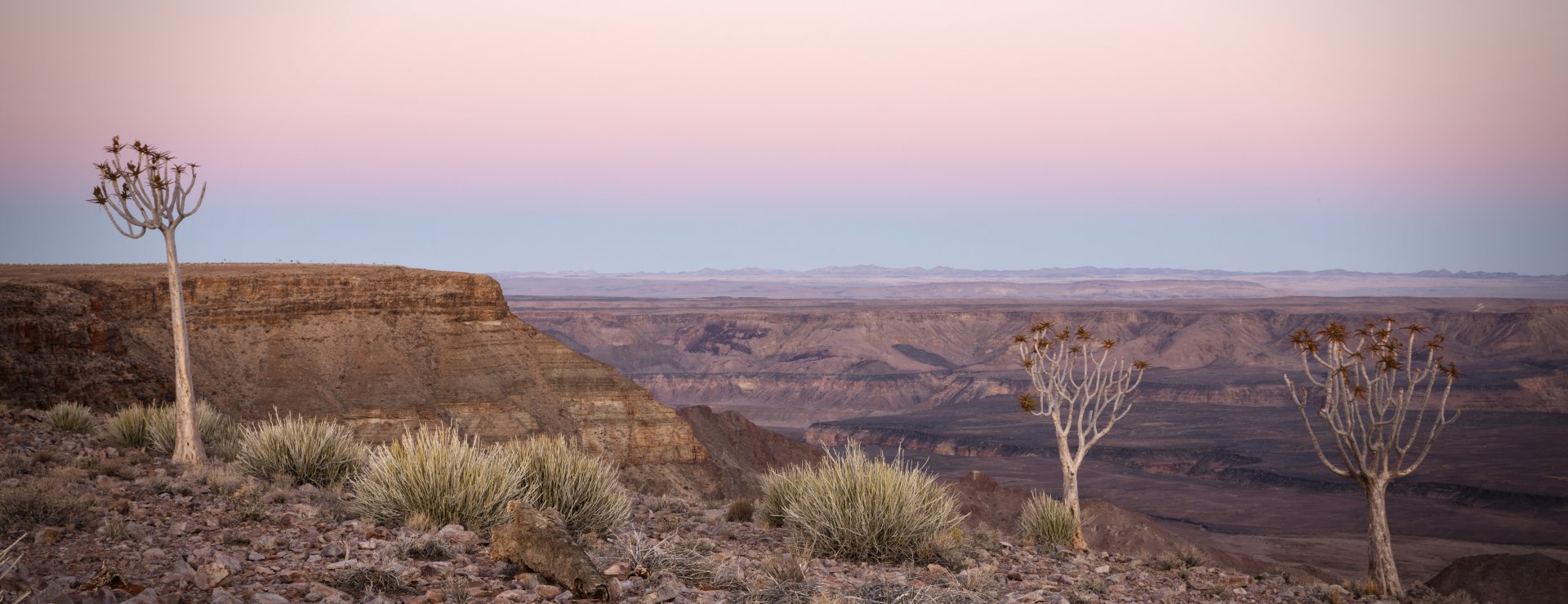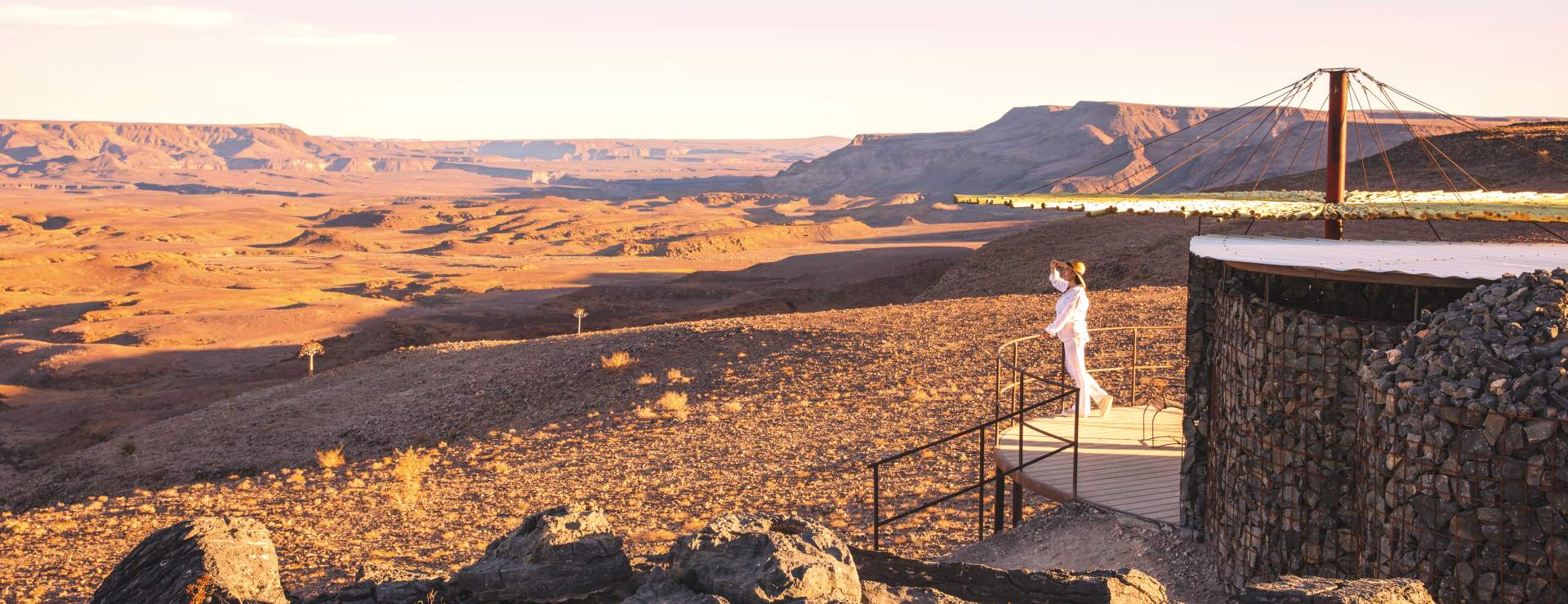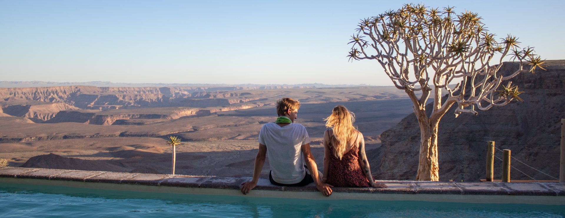I vågner til solopgangen, der farver Fish River Canyon i røde og gyldne nuancer, mens I kan nyde udsigten direkte fra sengen gennem de store vinduer. Derefter serveres en buffetmorgenmad med frisk frugt, brød, æg og kaffe på terrassen. Om morgenen kan I tage på en guidet vandring langs kanten af kløften, hvor luften stadig er kølig, og chancen for at se dyreliv er størst. Til frokost serveres en let anretning som salater, tærter eller sandwiches, hvorefter de varmeste timer på dagen ofte bruges ved poolen, i skyggen med en bog eller på terrassen foran jeres hytte. Om eftermiddagen byder lodgen på te og hjemmebagt kage, og herefter kan I tage på en solnedgangstur, hvor en guide kører jer ud til et særligt udsigtspunkt. Her nydes en drink, mens solen går ned og farver himlen over kløften dramatisk. Tilbage på lodgen serveres en tre-retters middag i restauranten med retter baseret på friske, lokale råvarer. Aftenen afrundes i loungen med et glas vin foran pejsen under en stjerneklar himmel eller i foran jeres hytte, hvor stilheden fra ørkenen tager over – Godnat.