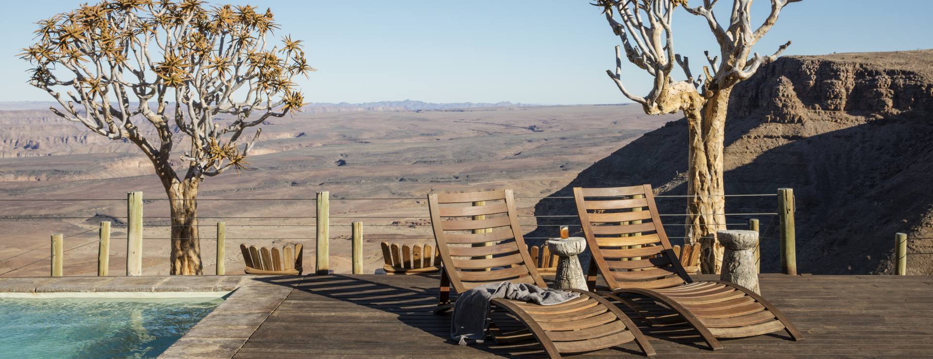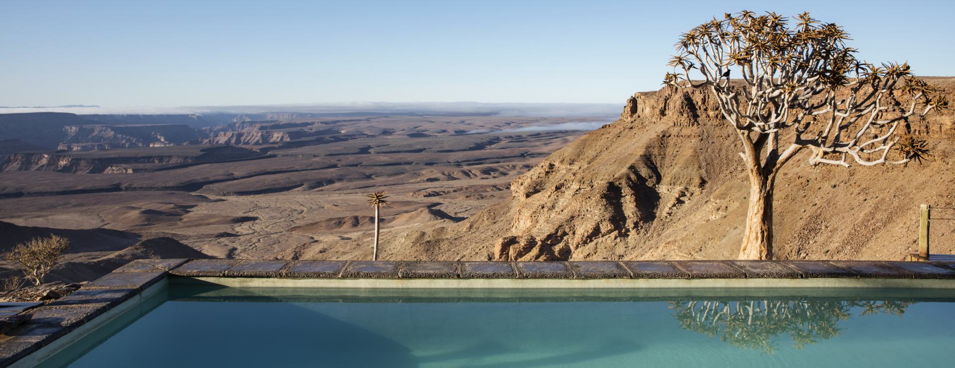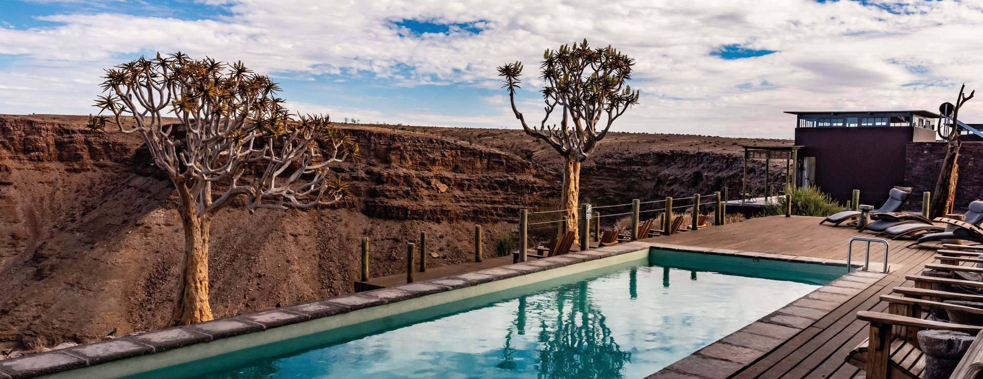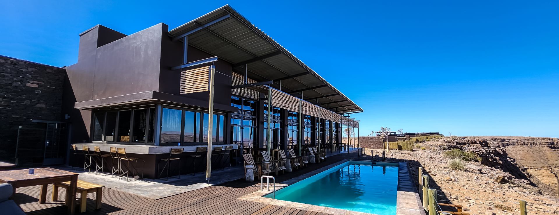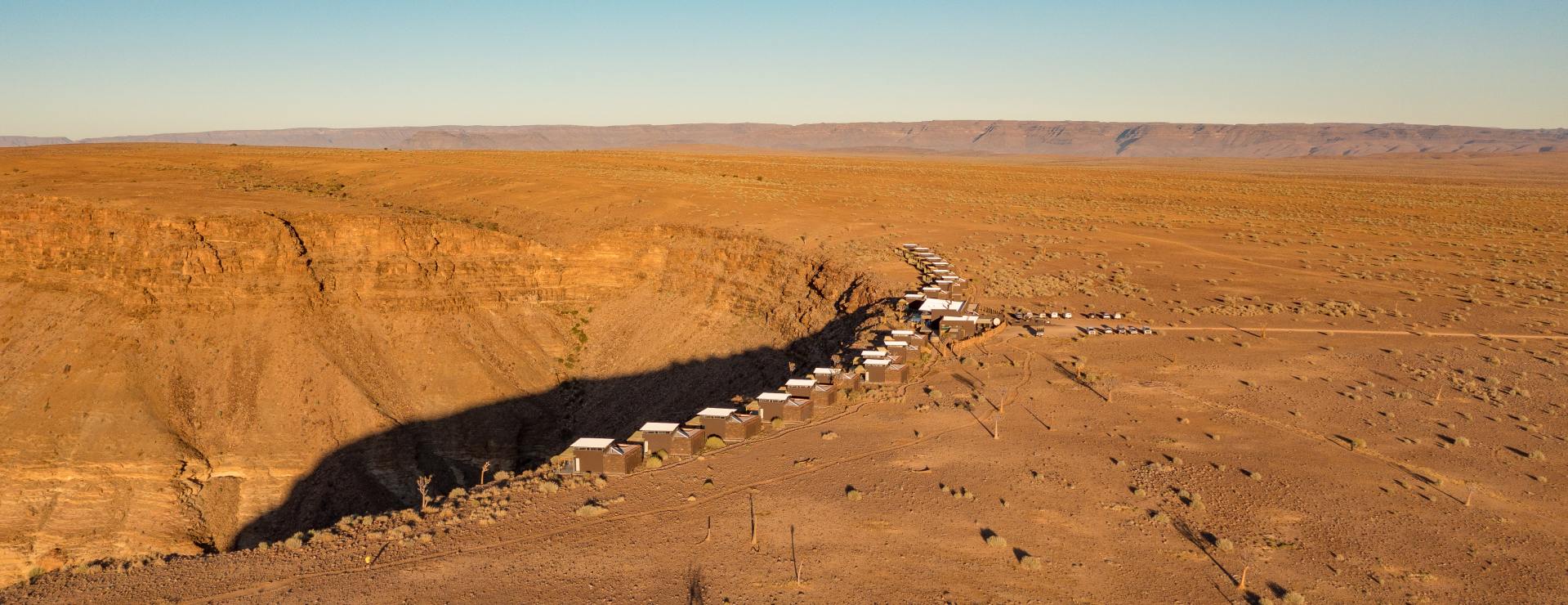 Fish River Lodge er den eneste lodge, der ligger direkte på kanten af Fish River Canyon. Lodgen ligger i Canyon Nature Park på den vestlige side af kløften, langt væk fra byer og trafik, hvilket giver en helt unik følelse af ro, vild natur og uforstyrret udsigt.