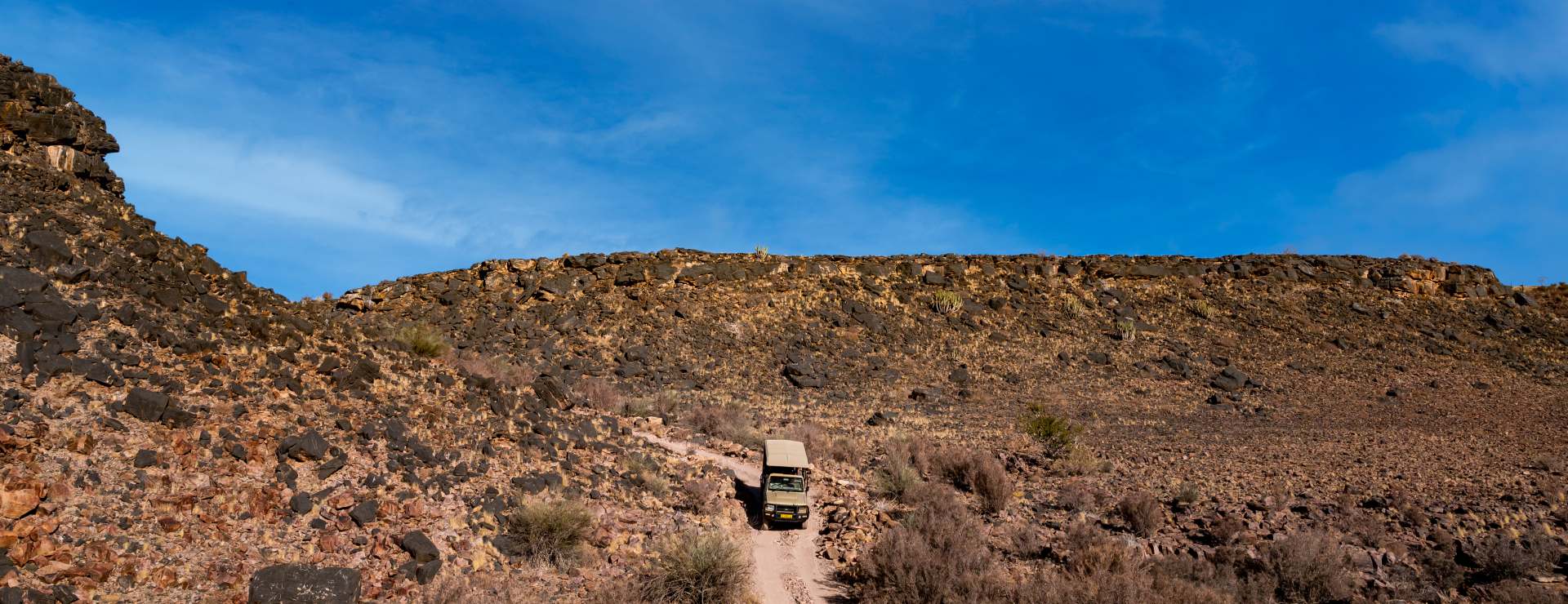 Fish River Lodge ligger omkring 675 km. fra Windhoek, og transporten tager lidt over ca. 7 timer, så det kræver et stop på vejen hertil.
