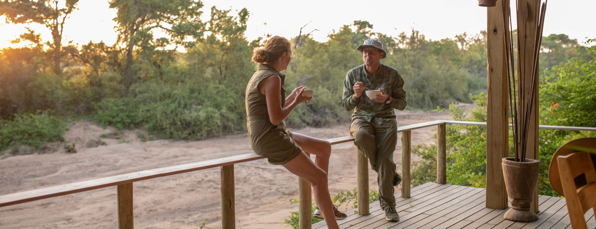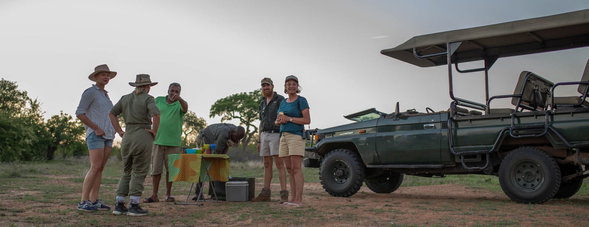 På en typisk safaridag vækkes I tidligt med kaffe og muffins, inden I ved 6-tiden tager på safari i åben 4 x 4 jeep. I er tilbage ved 9/10-tiden, hvor der serveres en større brunch. Der er nu tid til afslapning og måske kaffe før eftermiddagssafarien. I får solnedgangsdrinks i bushen og er tilbage på lodgen i god tid inden aftensmaden ved 20-tiden.