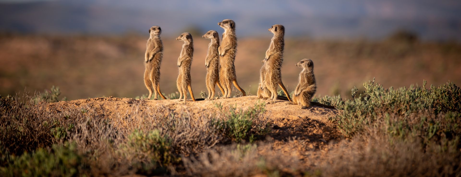 Jeres dag begynder tidligt med en solopgangstur ud på markerne for at møde de vilde surikater, som langsomt dukker op af deres huler, mens solen stiger over bjergene.