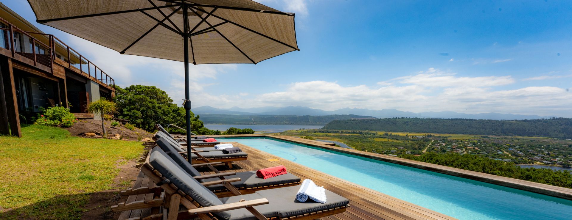 Fynbos on Sea er en eksklusiv boutique-lodge beliggende i Sedgefield langs Sydafrikas smukke Garden Route, højt over Swartvlei-lagunen med panoramaudsigt over det Indiske Ocean og det omkringliggende fynboslandskab