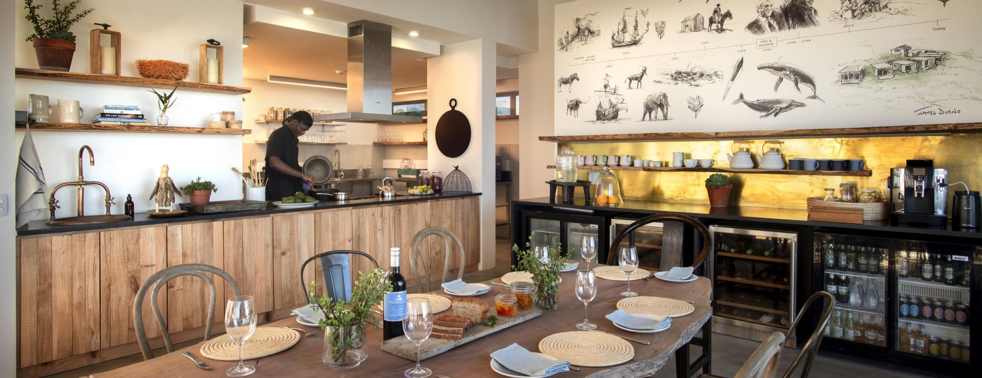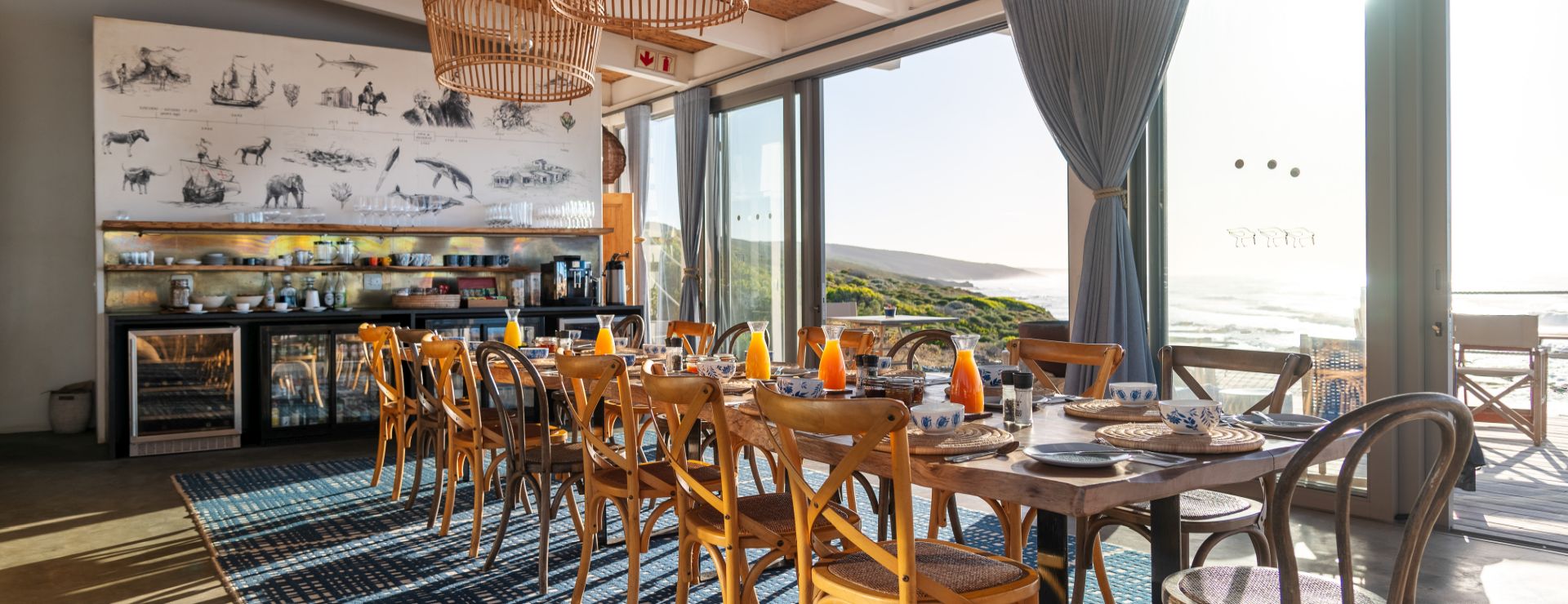 Frokosten serveres i spisestuen eller på terrassen med lokale råvarer og lette retter, mens I fortsat nyder udsigten over havet og landskabet. Om eftermiddagen kan I tage på længere vandreture gennem De Hoop Nature Reserve, cykle i området eller blot nyde roen på terrassen med en bog.