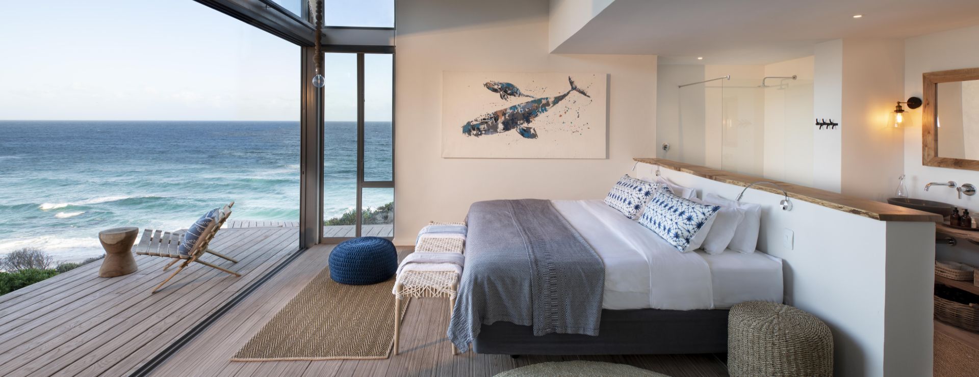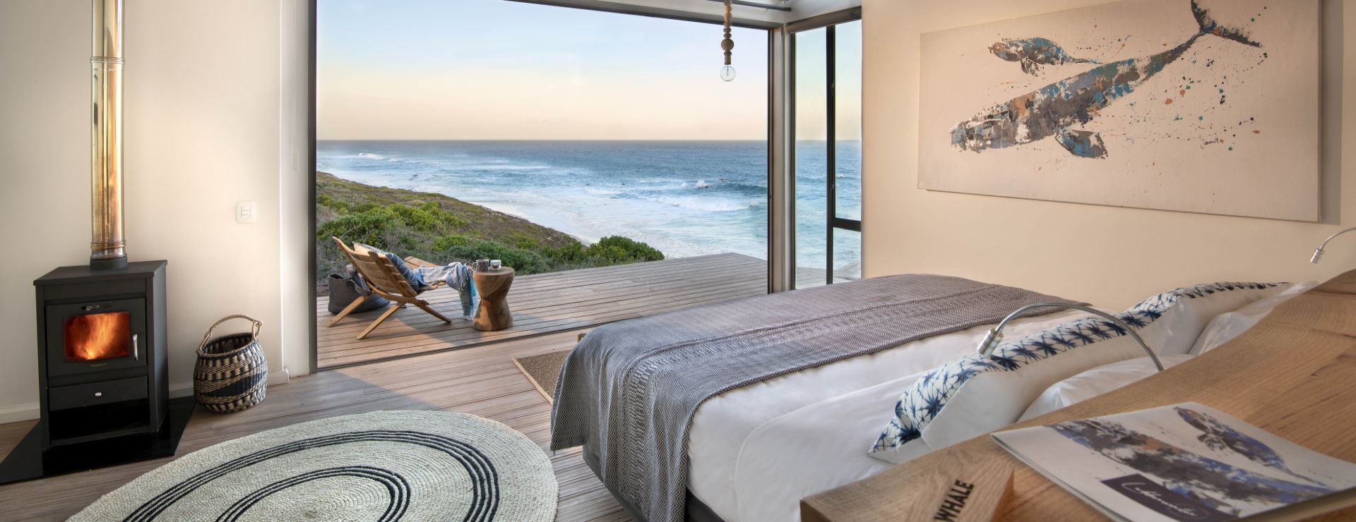 Lodgen tilbyder 7 suiter, alle med gulv-til-loft-vinduer og private terrasser, der giver storslåede udsigter over havet. Indretningen er inspireret af kystens naturlige elementer med brug af naturlige materialer og en beroligende farvepalet. Hver suite er udstyret med en brændeovn for hyggelige aftener og en udendørs veranda for afslapning. Nogle suiter har udendørs brusere.