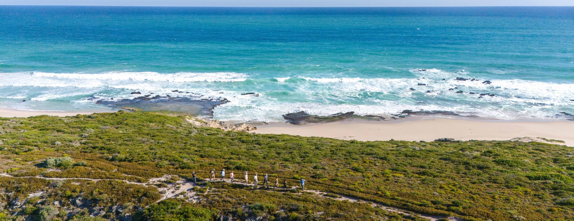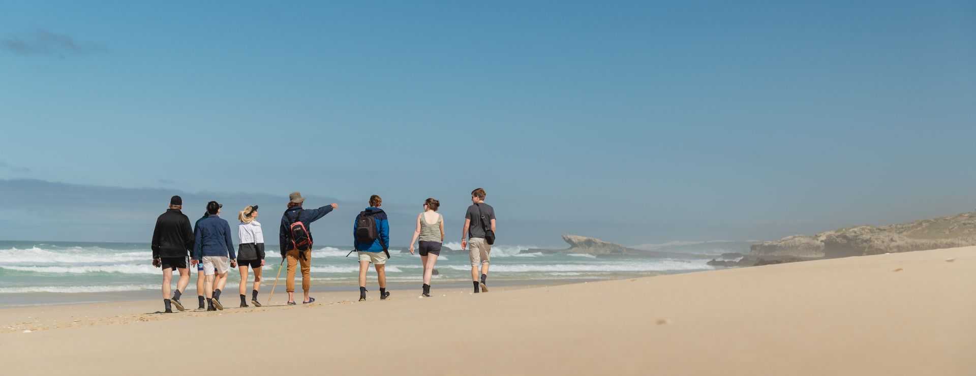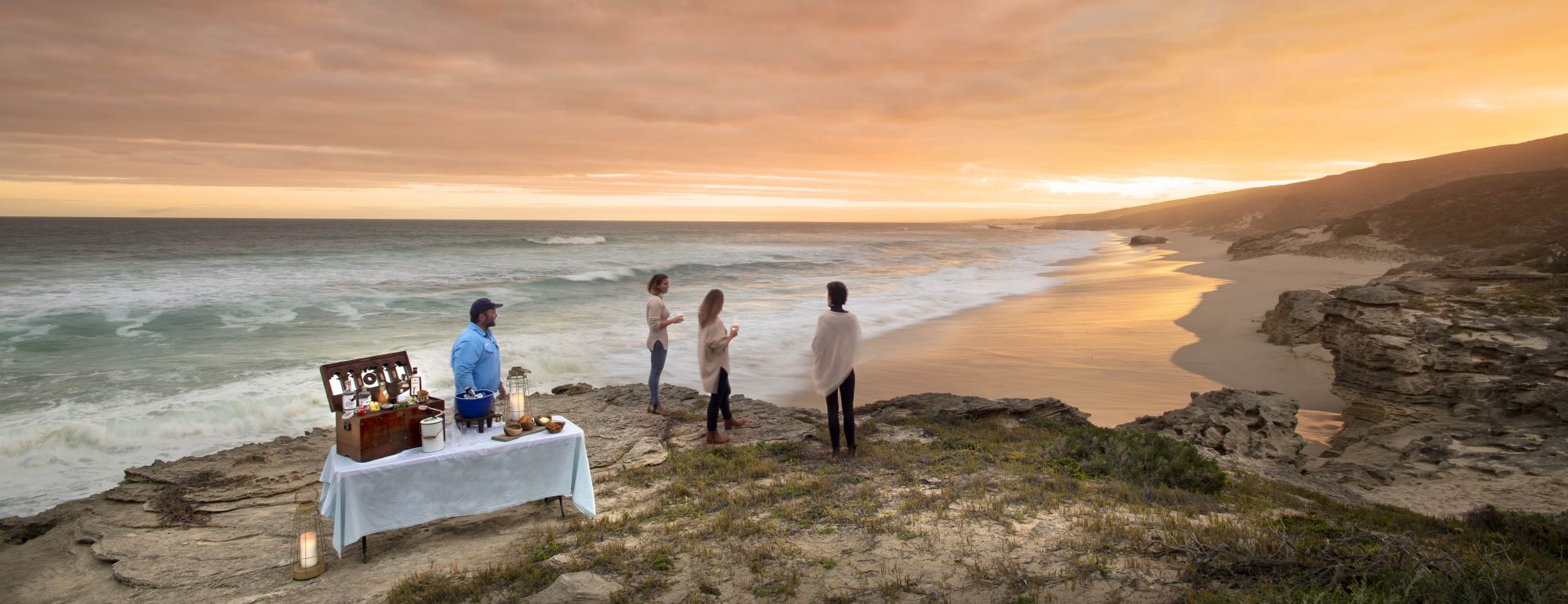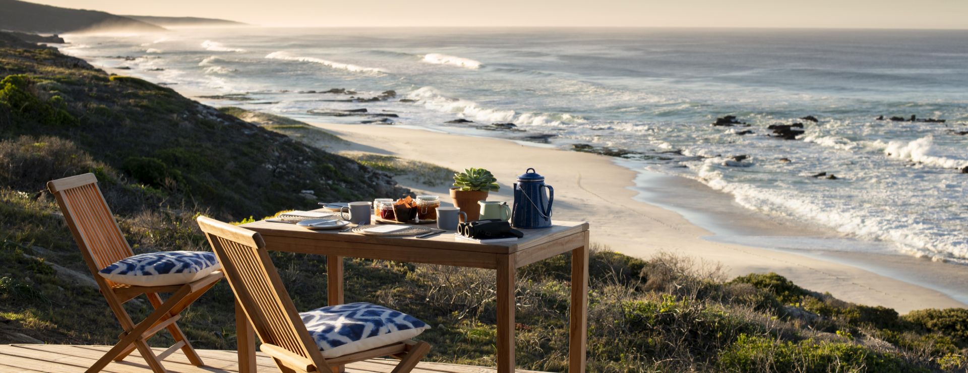 Dagen starter med morgenmad på lodgens terrasse, mens I nyder havluften og lyden af bølgerne, efterfulgt af en kort gåtur langs stranden eller på stier i det omkringliggende fynboslandskab. Formiddagen kan bruges på en guidet marine- eller naturvandring, hvor I udforsker tidevandsbassiner, huler og kystens flora og fauna, og i hvalsæsonen fra juli til november kan sydlige retterhvaler ofte ses fra stranden eller lodgens terrasser.