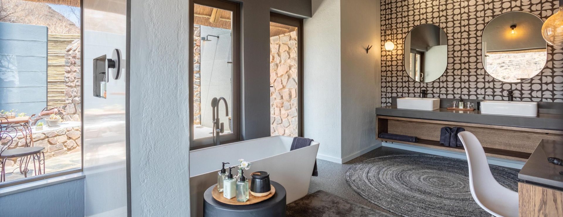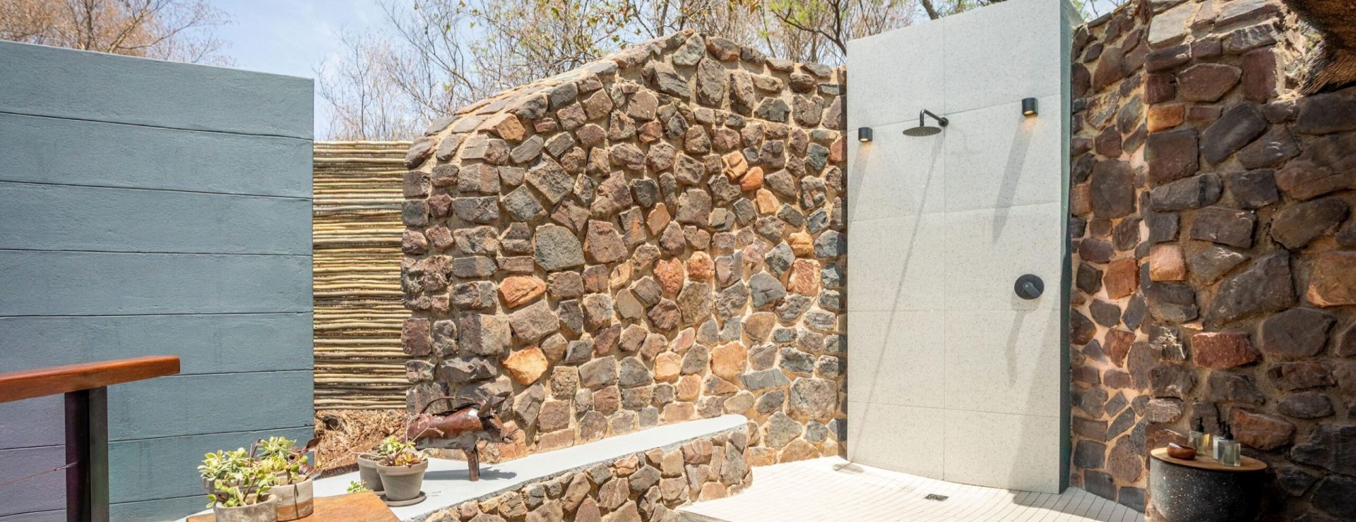 Der er kun 6 suiter – 4 suiter til to personer og 2 større familiesuiter – alle med eget badeværelse, både indendørs og udendørs brusere, privat træterrasse med udsigt til bushen. Udover aircondition og loftsventilatorer er suiterne udstyret med minibar, te- og kaffefaciliteter, myggenet, badekåber, hårtørrer mm.