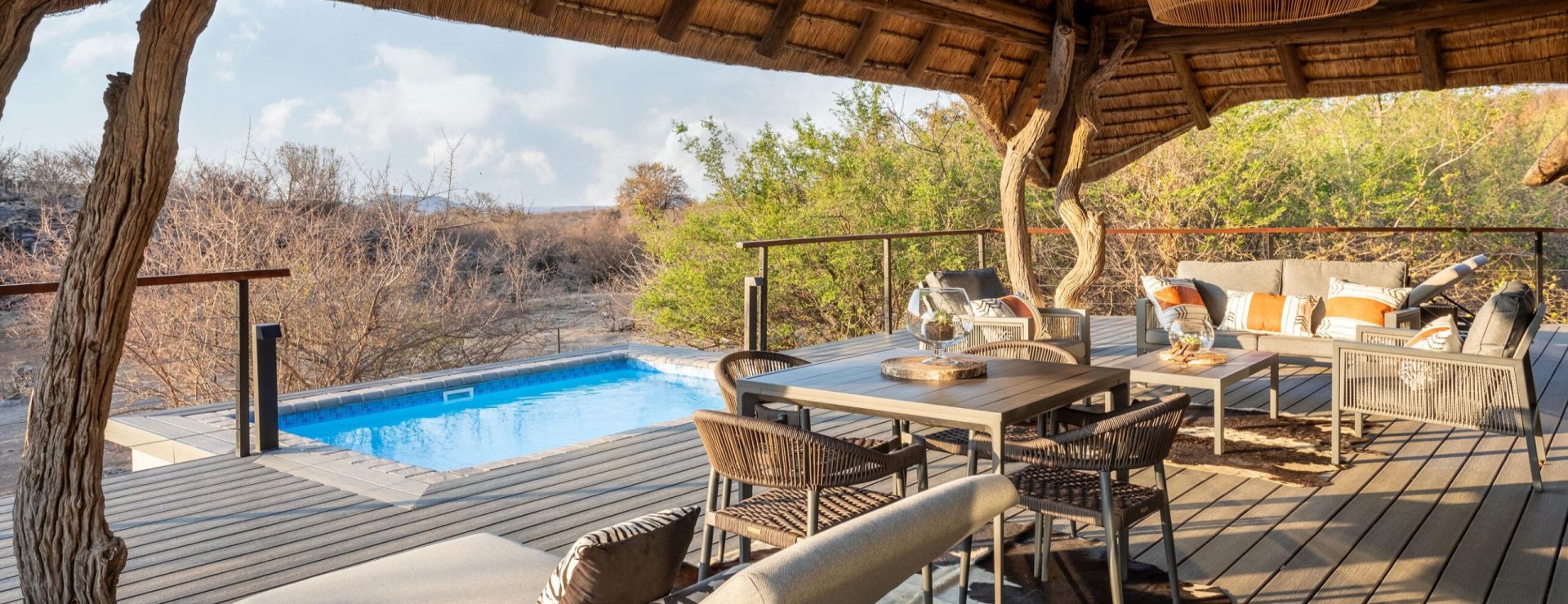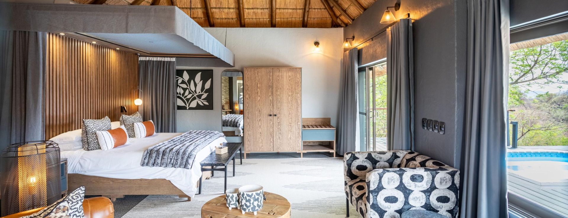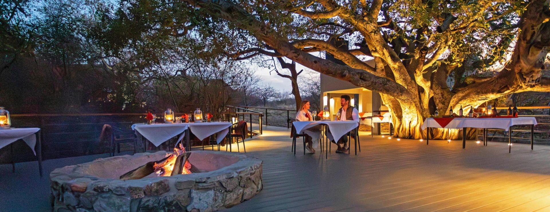 Når I vender tilbage til lodgen omkring kl. 19:00–19:30, venter der en treretters middag, ofte serveret i den åbne boma omkring bålet eller i den stemningsfulde spisestue. Middagen ledsages af sydafrikanske vine og hyggelige samtaler om dagens oplevelser. Efter middagen trækker I jer tilbage til jeres suite, og inden I aner det, er I faldet i søvn……