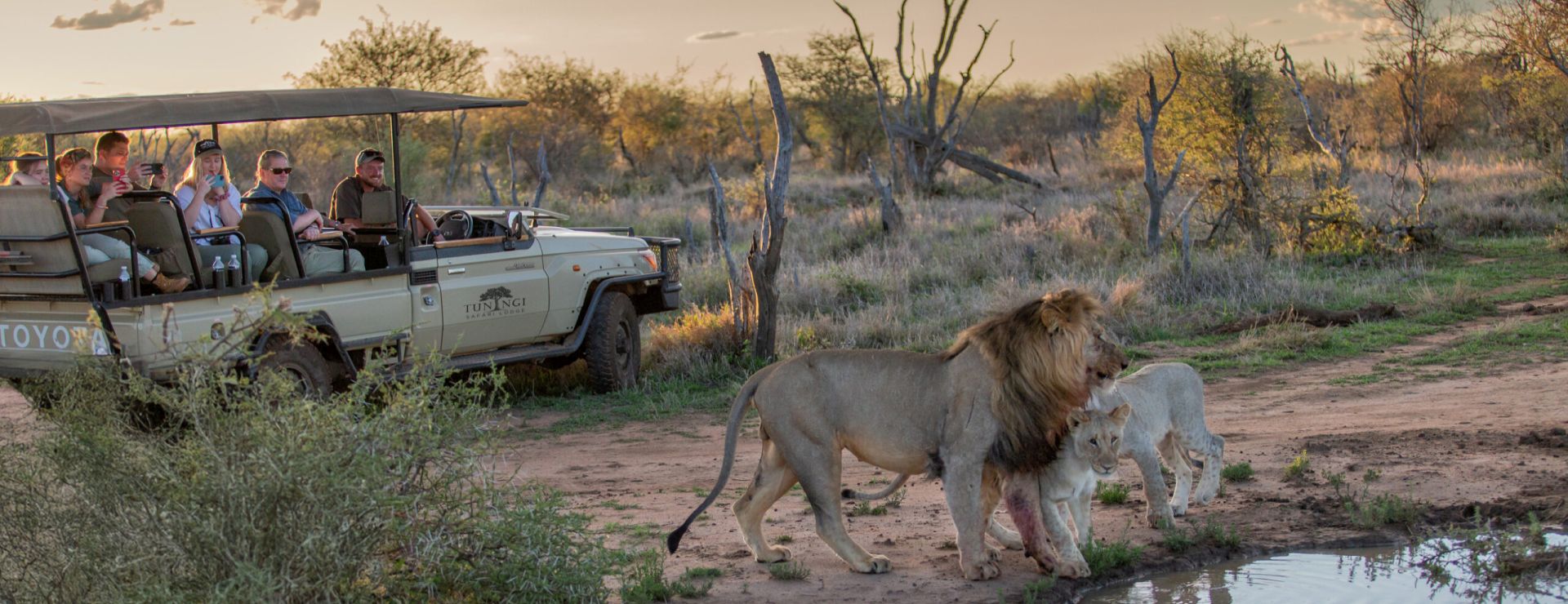 En typisk dag begynder tidligt om morgenen, når I bliver vækket omkring kl. 05:30 med kaffe, te og lette snacks. Kort efter starter første safari i et åbent 4x4-køretøj sammen med jeres ranger og tracker. Morgensafarien vare ca. 3 timer, og er det ideelle tidspunkt at spotte rovdyr og andre dyr, der er mest aktive i de køligere timer. Undervejs gøres der et stop i bushen til en kop kaffe eller te, hvor I kan nyde morgenstemningen omgivet af Afrikas vilde natur.