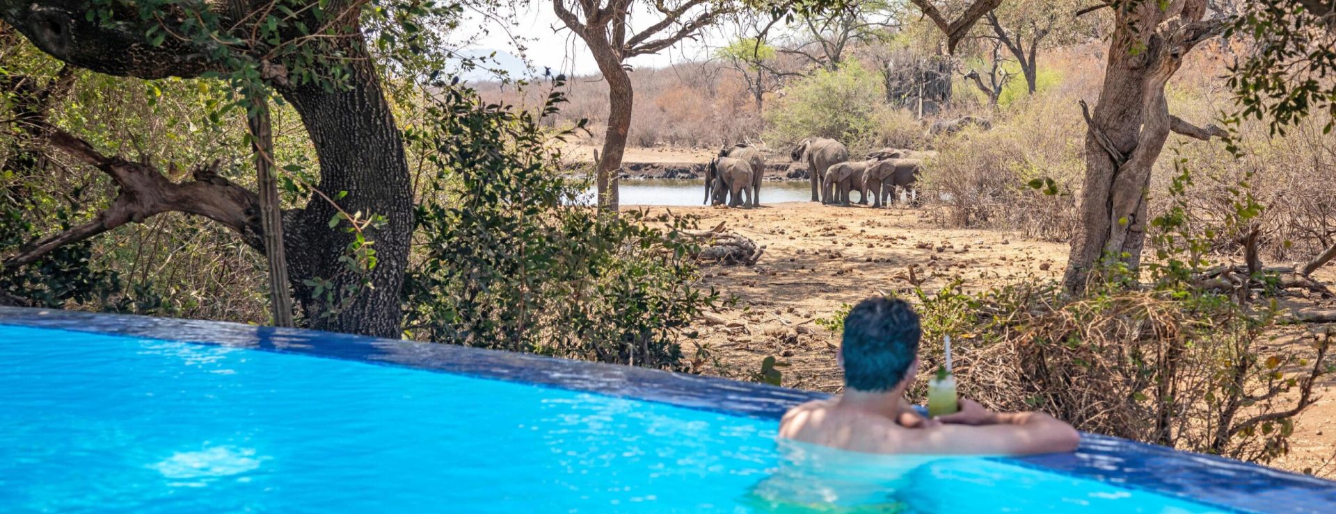 Lodgen har en dejlig infinity pool og det er muligt at få massagebehandlinger, og så er der er et lille fitnessområde. Vandhullet foran lodgen gør, at der tit er et right dyreliv direkte fra lodgen. Der er også lavet et “hide”, så man kan gå gennem en tunnel til et skjul, lavet i en høj ved vandhullet foran lodgen. I sidder i sækkestole og ser dyrene lige foran jer. Der er en lille sprække, så elefanterne kan lugte jer og stikker snablen hen for at tjekke. Her er holdere til kameraet som sikrer perfekte fotos. Lodgen er hegnet ind så den passer også rigtig godt til børnefamilier, børn skal dog være over 6 år for at deltage på safari. Men ellers er børn af alle aldre velkomne på Tuningi Safari Lodge.